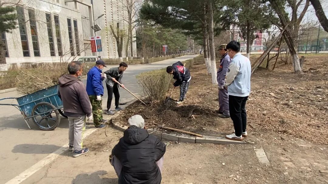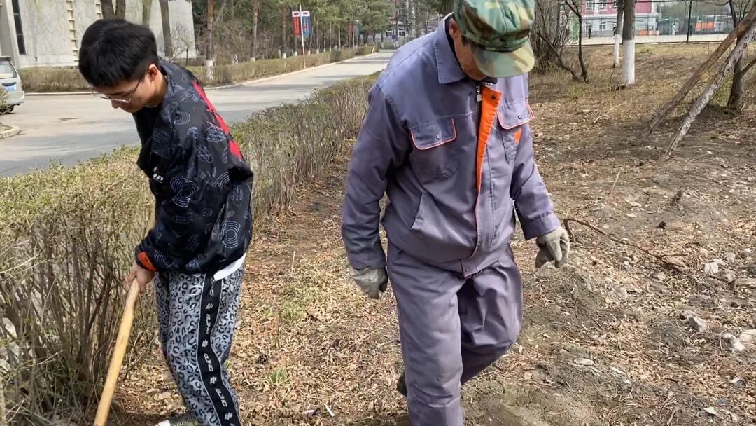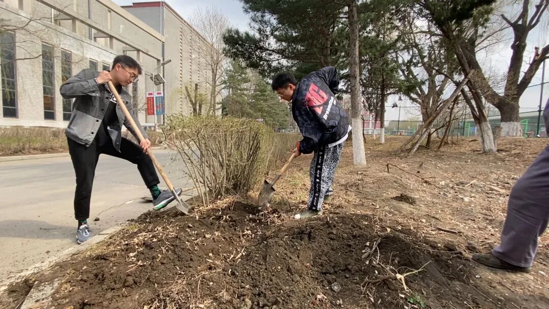 校园不仅是我们学习求知的地方,更是我们生活的场所。多位同学参与到绿化工作中,体会美化校园的不易。