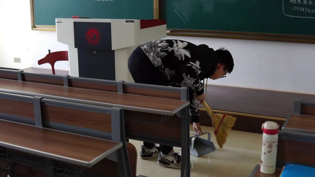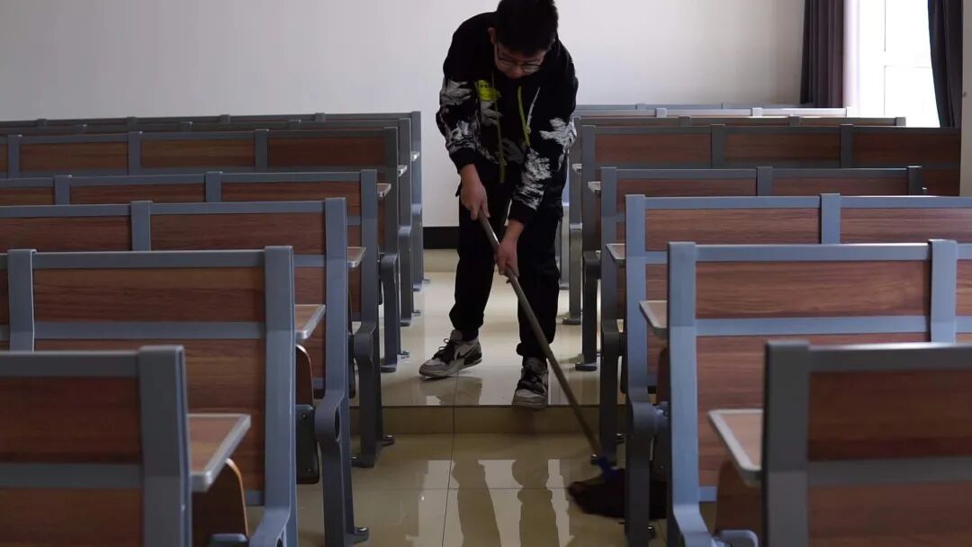 教室清洁的阿姨说:“看着孩子们每天可以在干净的教室里学习,有一个良好的学习环境,我的辛苦都值得!”